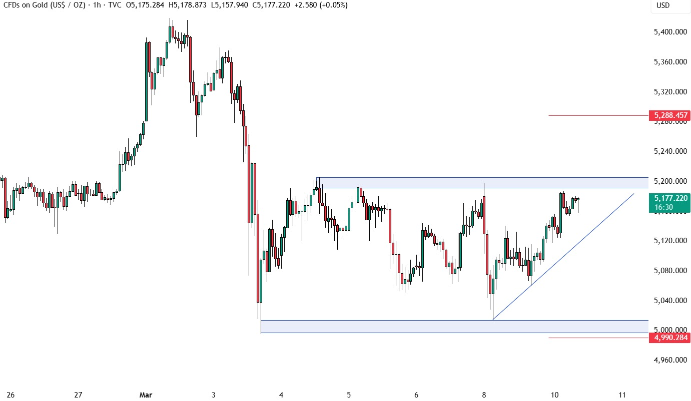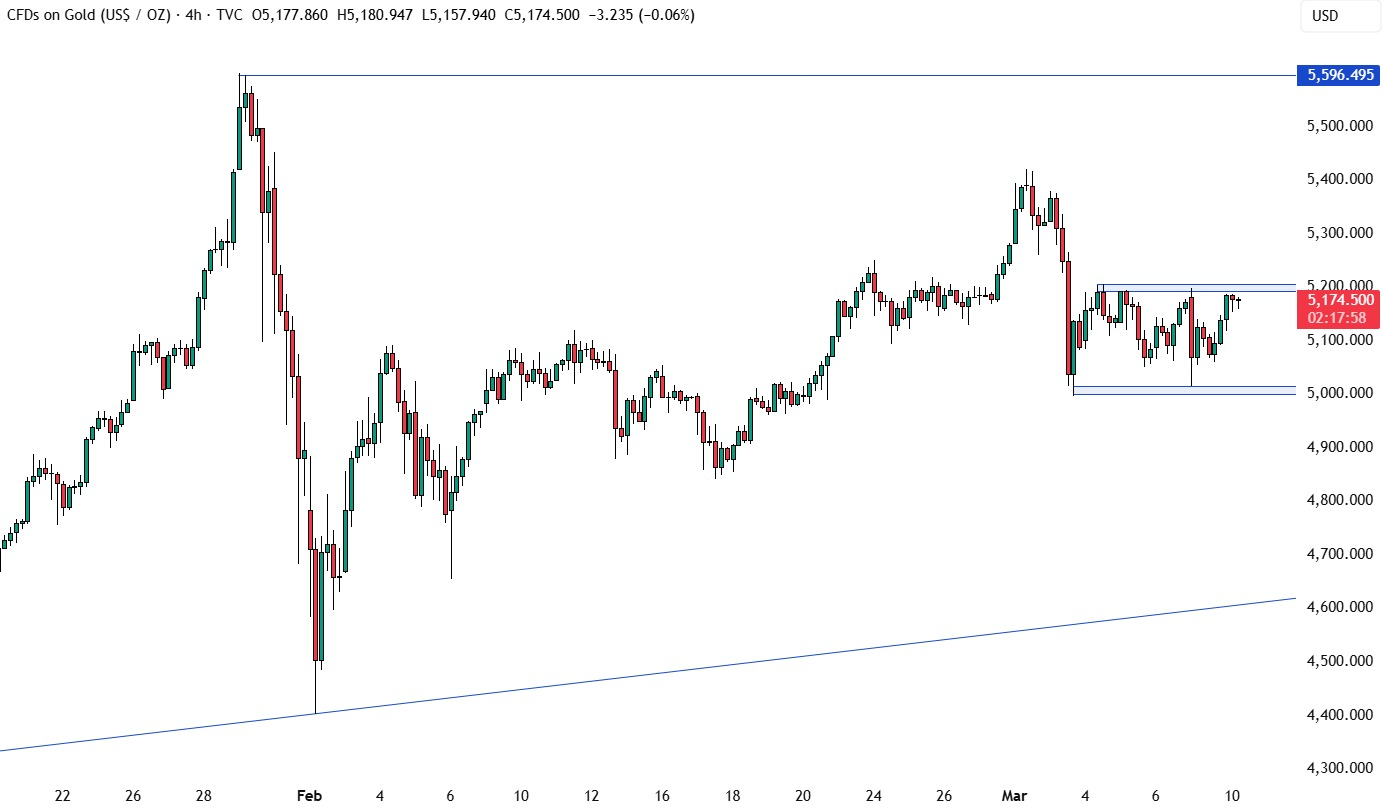 从4小时图来看,金价当前处于一个更为清晰的整理区间内,下方支撑位在5000美元,上方阻力位在5200美元。在真正出现向上或向下突破之前,市场参与者大概率仍将围绕这一震荡区间操作,即在靠近支撑位时逢低买入,在接近阻力位时逢高卖出。