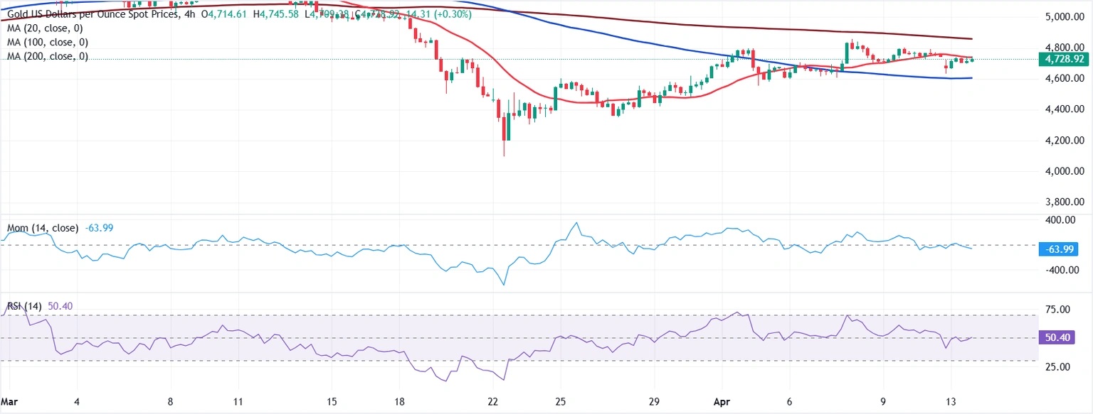 24K99讯 周二(4月14日)亚市盘中,现货黄金延续日内反弹走势,金价目前位于4768美元/盎司附近。FXStreet首席分析师Valeria Bednarik撰文,对黄金技术前景进行分析。