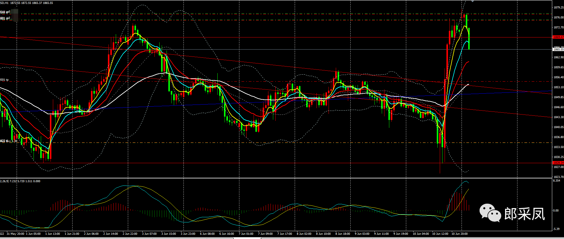 黄金昨天一波下跌的跌幅还是超出预期的,价格从1875一下子跌到1810附近,把周五拉升幅度全部回吐,在议息会议落地前,出现这样的走法,多空双杀,操作难度比较大,这也体现出风控的重要性。
