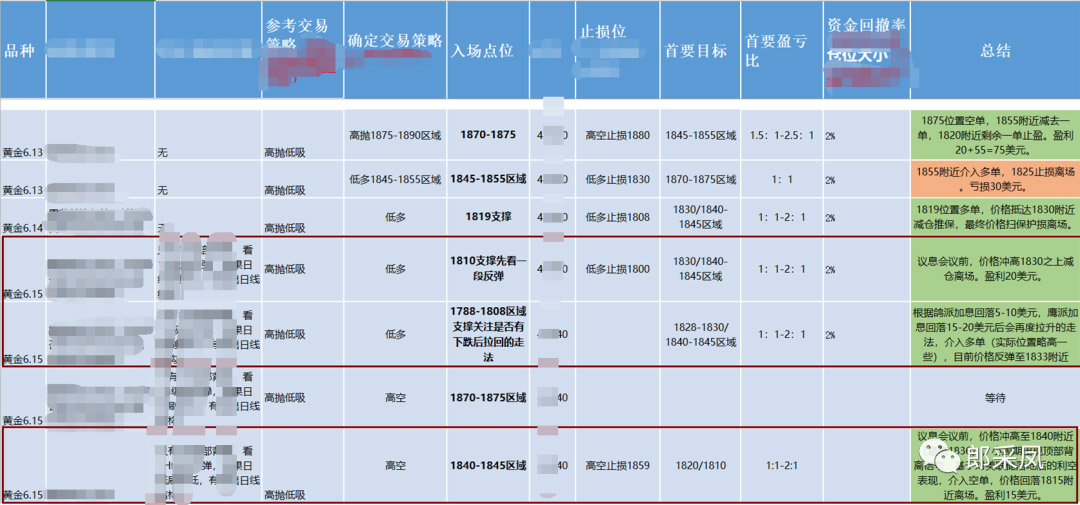 下图是本周黄金的几次入场,我每天都以交易计划的形式发在了点评班,希望给学员制定交易计划,以及执行交易计划作为参考。