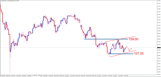 交易策略:激进的投资者可考虑107.30附近做多,止损106.50附近,目标108.80附近。