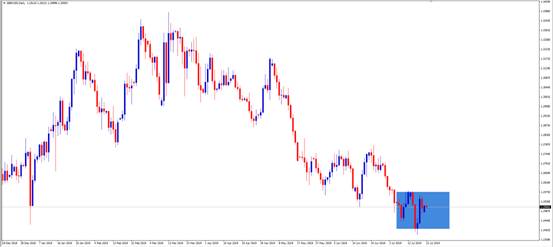 交易策略:如果价格测试1.2580附近收出走弱的K线形态,激进的投资者可考虑做空,止损60点左右,止盈80点左右。