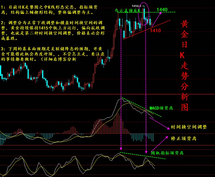 目前技术面来看,黄金早盘1421左右逢低做多,今日早盘开盘于高位,支撑以上坚*多,强势行情可见上方高点1429-1433,坚决做多,如果想做空现在没有点位,冲高1435做空,或者回破1421反弹再空,这是预备方案,因为最近的行情喜欢来回突破,主力在昨天的最高点做多,还是看涨,回调做多为主。
