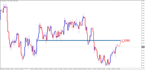 技术点评:D1周期中,价格保持弱势反弹走强的过程中,短线价格或往上试探1.3280附近的阻力位。