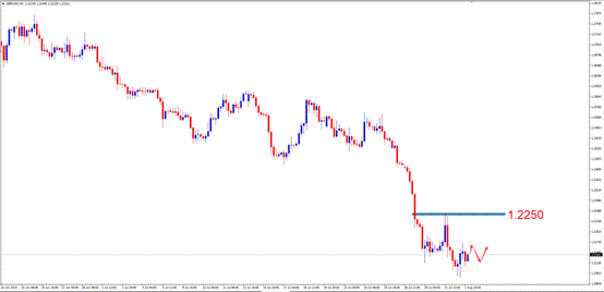 技术点评:H4周期中,英镑呈现完整的空头单边行情,后市大概率保持弱势下降趋势,关注核心阻力位1.2250附近。