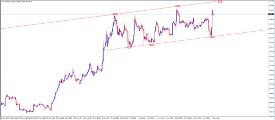 技术点评:H4周期中,黄金处于震荡上行通道内,但是多头上行力度略显不足,后是大概率仍将保持高位整理为主。