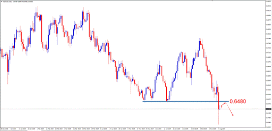 交易策略:建议投资者可考虑0.6480附近做空,止损0.6580附近,止盈0.6370附近。
