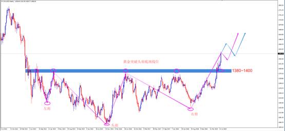 不过,我们认为,今年宏观环境对黄金有利,突破1400、1500两大关口将吸引更多买家的目光,牛市行情或刚刚开始,多头无须过早撤离。有利的宏观环境,叠加底部形态的突破,黄金多头延续至下半年几率很高。