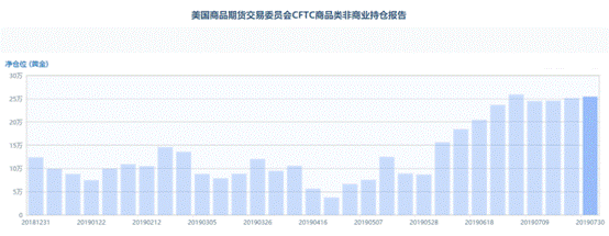 宏观环境是令金价走高的基础,而黄金市场高涨的多头情绪则是直接推手。我们通常从CFTC黄金投机性持仓报告以及全球最大黄金ETF——SPDRGOLDTRUST持仓报告,来观察黄金市场多空情绪。