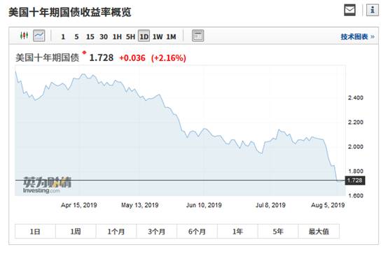 从作为全球债市风向标的十年期美债来看,今年6月末跌至2%,7月首周一度跌破1.95%,较去年第四季度高点下行超过120个基点。如今,10年期美债收益率已跌至2016年11月水平。要知道,全球债券收益率的低点是在2016年6、7月份创出的。美债收益率水平距历史低位已经不远。从中期来看,在全球经济持续放缓和美国失业率触底回升共振影响下,明年美联储降息进程可能提速,美债收益率整体跌破2016年年中的历史低位是有可能的。