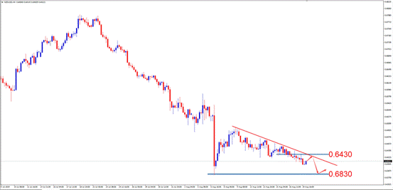 技术点评:H4周期中,纽元空头动能缓慢释放,价格保持弱势震荡走软,空头趋势不变。