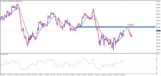 技术点评:H4周期中,价格处于低位0.9700至0.9840区间弱势整理,短线投资者可尝试高抛低吸操作。
