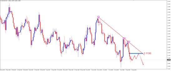 交易策略:可考虑1.1130附近做空,止损1.1215附近,止盈1.1010附近。