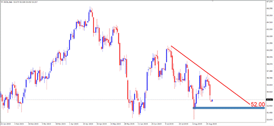 交易策略:持有空头头寸的投资者建议继续持有,目标位51.00附近,建议止损仍置于趋势线上方。