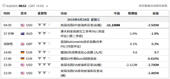另一方面,凌晨美国石油协会(API)公布的数据显示,美国截至8月23日当周API原油库存大幅减少1110万桶,预期减少213.3万桶。此外,汽油库存减少34.9万桶,精炼油库存减少250万桶。数据公布后,美油短线快速拉升。