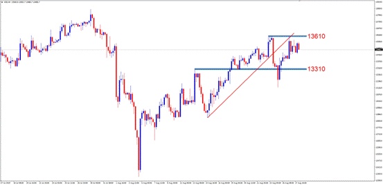 交易策略:激进的投资者可考虑13610附近做空,止损13800附近,目标13310附近。