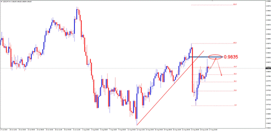 交易策略:激进的投资者可考虑0.9835附近做空,止损0.9890附近,目标0.9740附近。