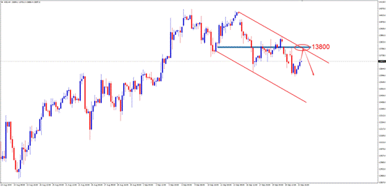 技术点评:H4周期中,价格坚决跌破上升通道,显示市场空头格局,建议投资者可关注反弹做空的机会。
