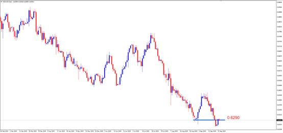 技术点评:D1周期中,纽元兑美元跌破0.6290前低强支撑位,后市恐继续下跌测试61.8%扩展位。