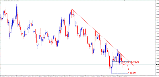 交易策略:建议投资者可考虑1.1020附近做空,止损1.1070左右,目标1.0925左右。