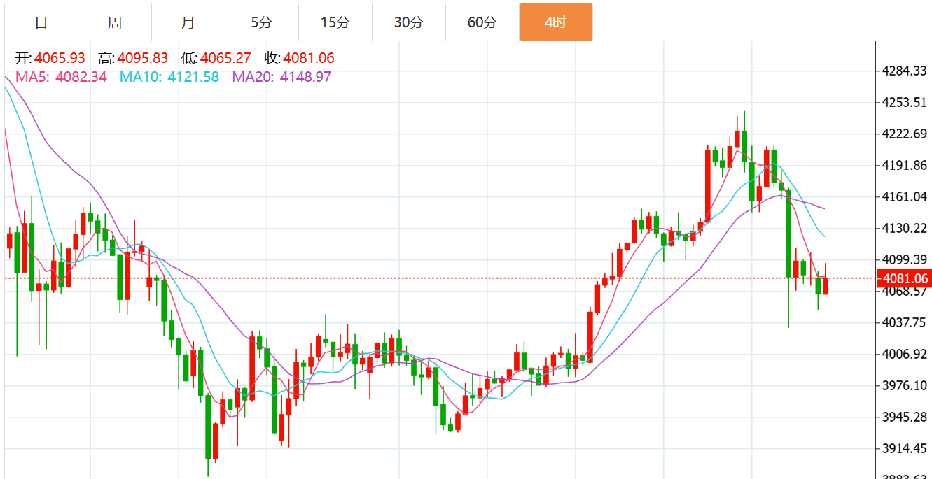 黄金技术面分析:当前盘面来看,日线级别上周周五的大阴线贯穿跌破5日线,原本预期10、20日线4060附近会有争夺暂缓,但盘中也被刺破,如此下跌力度是比较意外的,不过最终的收大阴线的状态也奠定了本周黄金或走震荡下跌的基础。本周初上方可关注5日线4130-35一带争夺测试,承压其下则黄金就会有更大的下跌可能。下方关注20日线4045附近争夺测试,一旦行情再度回到20日线下方,那么后期调整趋势将更加明确。不过需要注意的是,4000整数关口可能会有争夺,能否跌破就要看基本面是否有进一步的催化利空消息助力。结合小时图走势,上周五行情大跌后,跌至4030附近回弹,但上方在4110附近再遇阻,这就使得小时图结构上留下一个较大的缺口位4110-4150.本周此缺口若不回补,那么意味着空头力度强劲,后期行情或有更大的下跌可能。若本周回补此缺口,但不破上沿,那么黄金依然难改弱势修整局面。周内下方也继续关注4070、4050附近争夺,对应的在日线级别也是20日线支撑,允许在此附近有争夺,如果跌破再去看4000整数关口争夺。综合上述,周初黄金主线思路还是以持空以及择高再短空为主,行情回归技术弱势趋势后,若基本面没有明确的利多引导,那么尽量少做或不做短多尝试。建议上方先留意4110.之下延续看4045-4030.下跌破位在关注4000关口,若多头强势上涨破位4110.可以回落短多参与上看4150附近。综合来看,黄金今日短线操作思路上贺博生建议以反弹高空为主,回踩低多为辅,上方短期重点关注4110-4130一线阻力,下方短期重点关注4050-4030一线支撑。