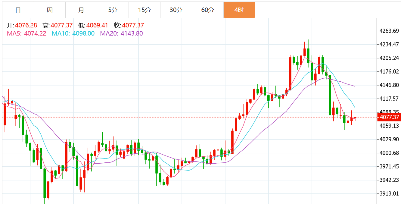 黄金技术面分析:当前盘面来看,日线级别上周周五的大阴线贯穿跌破5日线,原本预期10、20日线4060附近会有争夺暂缓,但盘中也被刺破,如此下跌力度是比较意外的,不过最终的收大阴线的状态也奠定了本周黄金或走震荡下跌的基础。本周初上方可关注5日线4130-35一带争夺测试,承压其下则黄金就会有更大的下跌可能。下方关注20日线4045附近争夺测试,一旦行情再度回到20日线下方,那么后期调整趋势将更加明确。不过需要注意的是,4000整数关口可能会有争夺,能否跌破就要看基本面是否有进一步的催化利空消息助力。结合小时图走势,上周五行情大跌后,跌至4030附近回弹,但上方在4110附近再遇阻,这就使得小时图结构上留下一个较大的缺口位4110-4150.本周此缺口若不回补,那么意味着空头力度强劲,后期行情或有更大的下跌可能。若本周回补此缺口,但不破上沿,那么黄金依然难改弱势修整局面。周内下方也继续关注4070、4050附近争夺,对应的在日线级别也是20日线支撑,允许在此附近有争夺,如果跌破再去看4000整数关口争夺。综合上述,周初黄金主线思路还是以持空以及择高再短空为主,行情回归技术弱势趋势后,若基本面没有明确的利多引导,那么尽量少做或不做短多尝试。建议上方先留意4110.之下延续看4045-4030.下跌破位在关注4000关口,若多头强势上涨破位4110.可以回落短多参与上看4150附近。综合来看,黄金今日短线操作思路上贺博生建议以反弹高空为主,回踩低多为辅,上方短期重点关注4100-4130一线阻力,下方短期重点关注4050-4030一线支撑。