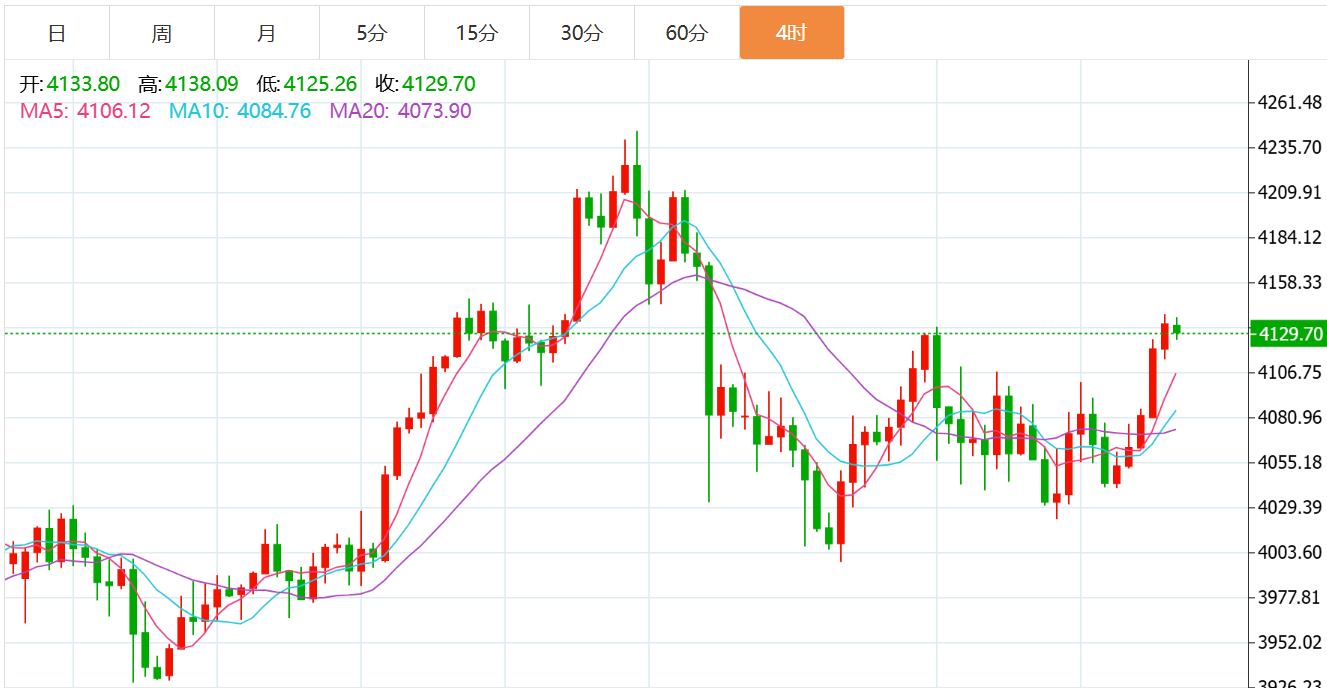 黄金技术面分析:黄金周一没有意外的继续反复在区间内运行,最大范围在4130/4000.前期来回震荡了几次,不过经过上周五的涨跌,收盘还是在4080高点,相当于震荡的高点位,所以在技术面内,日线周期还是在布林中轨之上,H4周期则是标准的震荡区间,暂时来看难以出现大涨大跌走势,需要市场刺激,才能走出破位的单边力度。那么本周继续保持4130/4000区间,没有破位就可以在此区间内做高空低多,破位后再看单边力度。小周期的表现也是如此,周一开盘黄金先跌后涨,也是震荡表现,不过经过周一的震荡走高,下方支撑随着上移至4060.短线操作上可回落到此点位做多看涨,短线看目标就放在4100附近即可,但如果力度过大,也可以直接看到前期的高点4160-4180附近,所以本周初交易还是在震荡的格局中以低多看涨为主,但是也要提防高位受压,短线走出回落空间,我也会临盘实时在线给出最新策略。综合来看,今日黄金短线操作思路上贺博生建议以回调做多为主,反弹高空为辅,上方短期重点关注4160-4180一线阻力,下方短期重点关注4110-4090一线支撑。