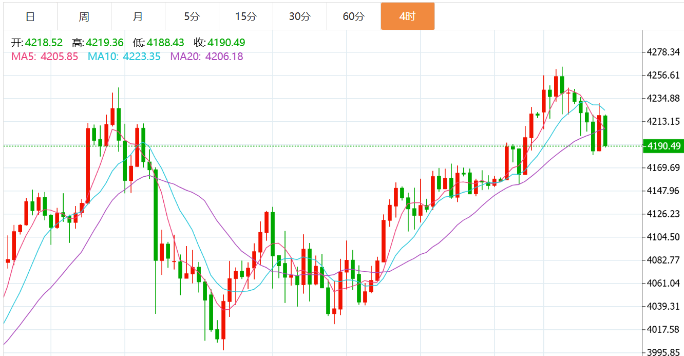 黄金技术面分析:黄金昨日早盘时段延续一波情绪化上涨,随后行情回撤调整,欧盘时段震荡回弹,高点测压至4265附近,但随后行情出现调整回修,低点跌回至4220附近,日线最终收得一阳十字星线。日线结构上来看,黄金日均线系统依然保持着多头排列状态,说明市场主体意愿还是偏向于看涨的,但是昨日十字星也透露出多头动能不足的端倪,这种现象是两方面因素导致的:一是前期连续多日震荡上涨,多头动能已经消耗,技术上也有回修调整的需要;二是基本面炒作美联储降息预期热度有所降低,没有后续的利多刺激,多头也很难获得持续的上涨动力,出现调整也就在所难免。今日早间黄金出现一波快速回撤,回撤4200下方,但尚未破5日线,不过这样的举动已经透露当前黄金还是需要进行合理性的修整的。日内下方继续先关注5日线4200-4195一带争夺,如果有跌破,则短期内下方或可能去10日线4150附近找支撑。日内上方则继续关注日线级别区间上沿压力4260-65附近,但在此之前,昨日收盘位4230-35附近亦有可能一定的阻力。