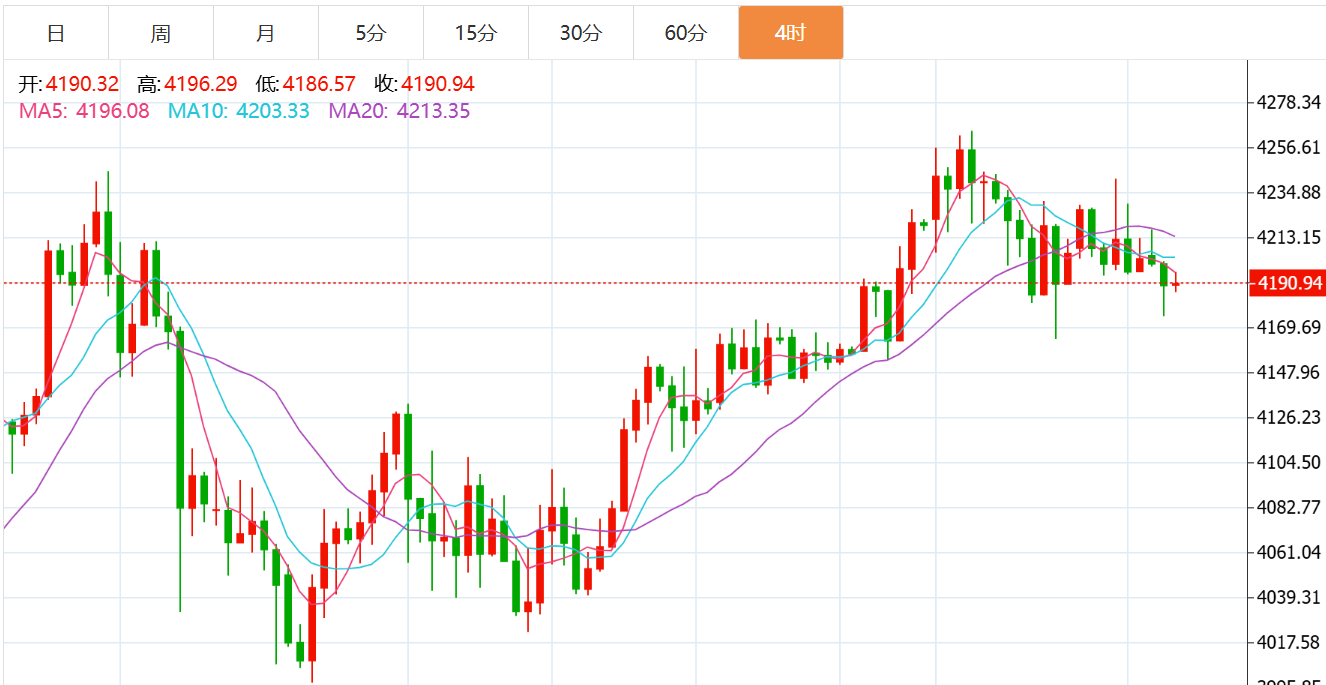 黄金消息面解析:周四(12月4日)欧市早盘,现货黄金窄幅震荡,目前交投于4190美元/盎司附近。周三国际金市呈现出持稳态势,现货黄金价格大多数时间稳定在每盎司4200上方,疲软的美国就业数据一度帮助金价盘中触及4241.40美元的高点,但尾盘回吐涨幅,收报4203美元附近,接近收平。与此同时,白银价格周三刷新历史高点,盘中一度达到58.95美元,仍为黄金提供了支撑,也反映出市场对美联储降息的强烈预期,推动美国债市收益率回落、美元走软以及股市上涨。随着美国劳动力市场意外下滑和美联储宽松政策信号日益明显,白银的强势飙升已点燃贵金属板块热情,而黄金作为传统避险资产,似乎正蓄势待发。