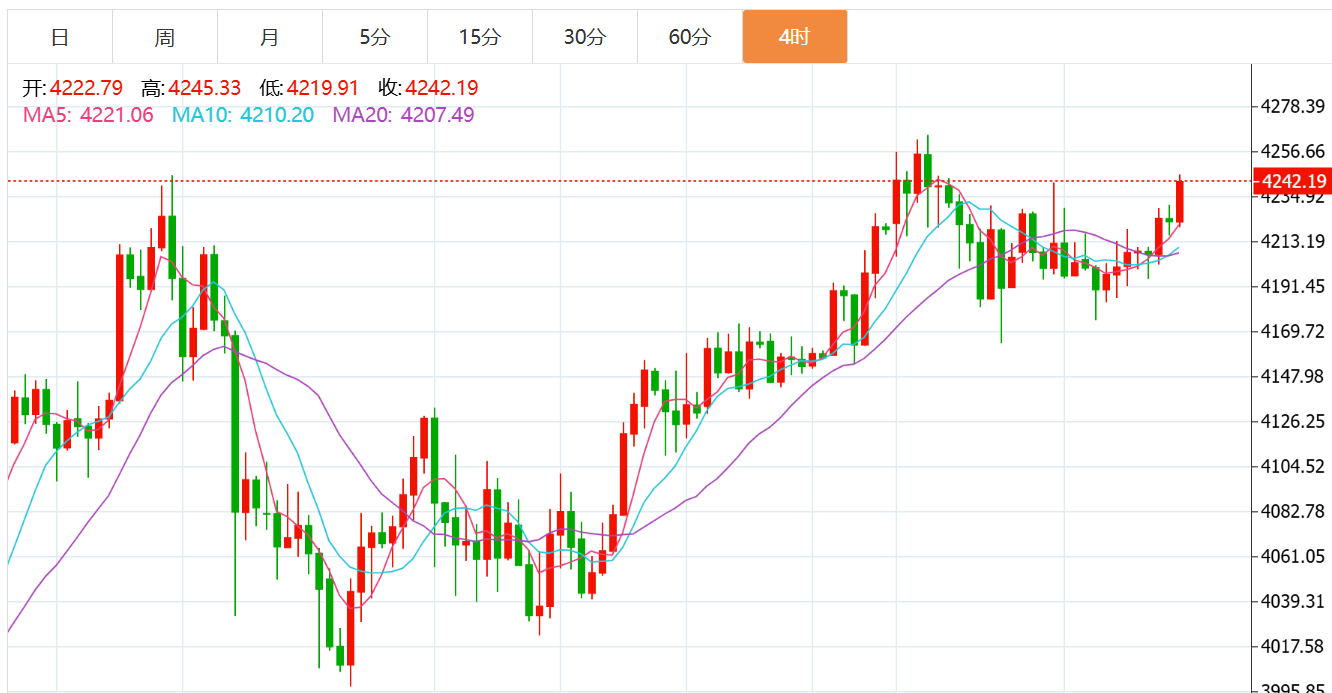 黄金技术面分析:黄金昨日先回撤4175一线,随后震荡反弹,晚盘高点一度测压4220一线,但后半夜行情又有回撤调整,跌回4200附近,日线最终收得一阳十字星线。日线结构上来看,昨日黄金回撤10日线4175附近未破,且最终收十字星都符合预期的走震荡消化路线,这样的状态说明当前市场多头情绪有所淡化,但是并未完全退去,而空头也依然施展不开。日线级别连续的收十字星线,表明多空双方争夺僵持,短期内或需要外界因素来做引导,所以今晚美PCE数据可能会使得美联储降息预期再度成为市场关注焦点,黄金市场或可能因此出现剧烈波动,对此务必要加以关注。
