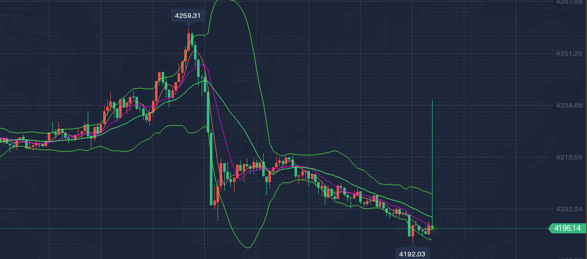 黄金昨日走势呈现先扬后抑格局,价格在快速拉升至4260附近后突然反转,急速下行至4190附近低点,单日回调约70美元,随后逐渐回稳至4200一线整理。