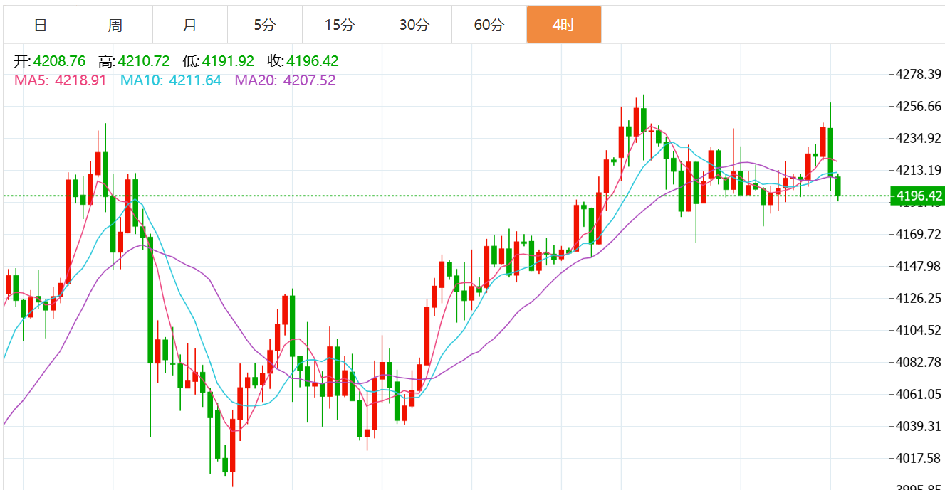 黄金技术面分析:当前盘面来看,现货黄金突破对称三角形形态后维持横盘整理,因缺乏后续买盘支撑,上行尝试受阻于4260美元附近。4小时图显示,现货黄金围绕20期简单移动平均线(SMA)震荡,反映短期走势呈中性。但整体上行趋势仍未改变,回调大概率将吸引逢低买盘。上行方面,需明确突破4260美元才能重启看涨动能,若突破有望上探4300美元关口,甚至可能测试4381美元附近的历史高点。下行方面,初步支撑位于近期整理区间下沿4160-4170美元区间,进一步支撑为100期简单移动平均线(SMA)附近的4141美元。综合上述,下周开盘建议下方先留意4170.之上继续看4220-4230区域或4250一带,重点关注4160-4155区域。对于上方建议关注4240附近可以尝试空,重点关注4260-4265区域。综合来看,黄金下周短线操作思路上贺博生建议以反弹高空为主,回踩低多为辅,上方短期重点关注4225-4245一线阻力,下方短期重点关注4175-4155一线支撑。