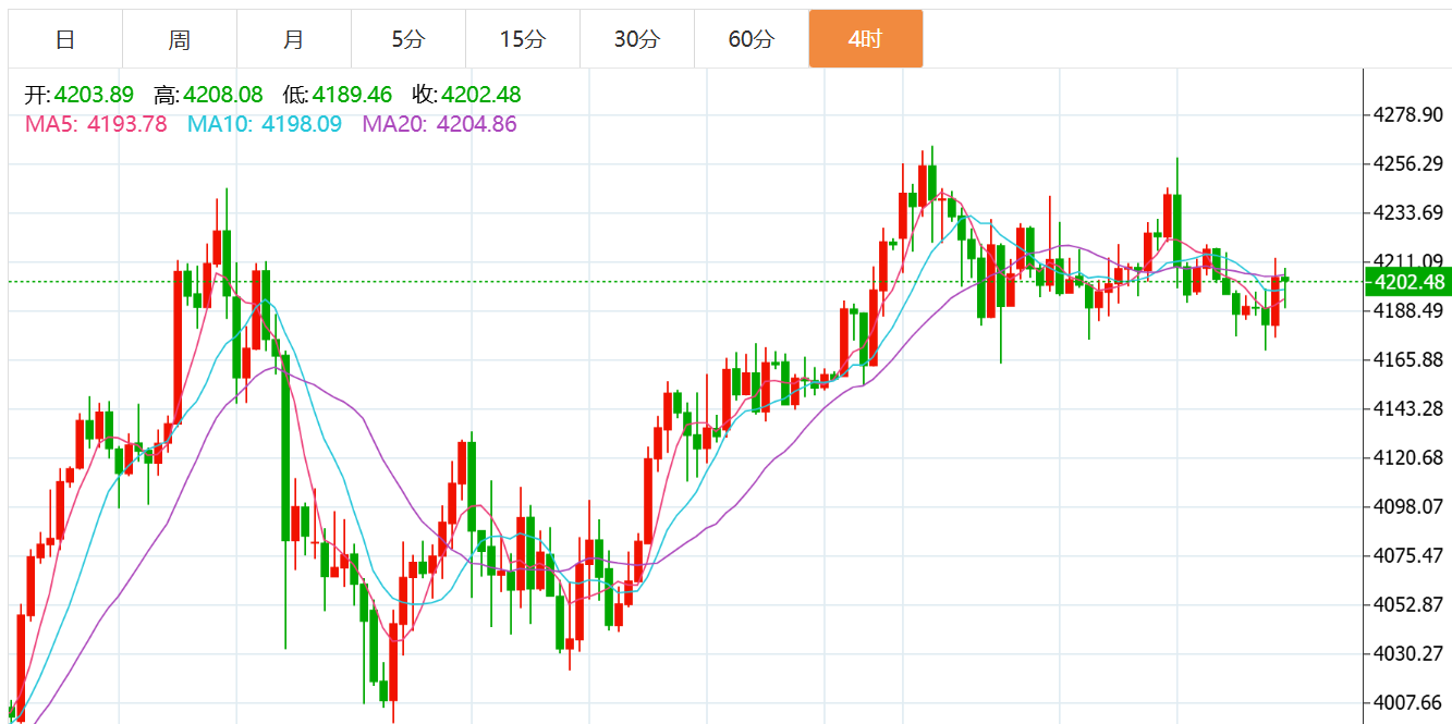 黄金技术面分析:黄金上个交易日走出震荡日线报收一根带上下影线的寸头阴线,黄金整体还是继续震荡,没有明显的单边趋势,市场都在等周四凌晨美联储利率决议,看来还是得等数据之后才能走出方向,昨天反弹遇阻4220空如期下跌,黄金目前在日线走势上继续维持在震荡偏弱一些的走势,短周期均线开始逐步勾头向下发散价格重心也开始逐步下移,在日线走势上可能还有继续下行的空间,短期关注下4160一带的支撑带。