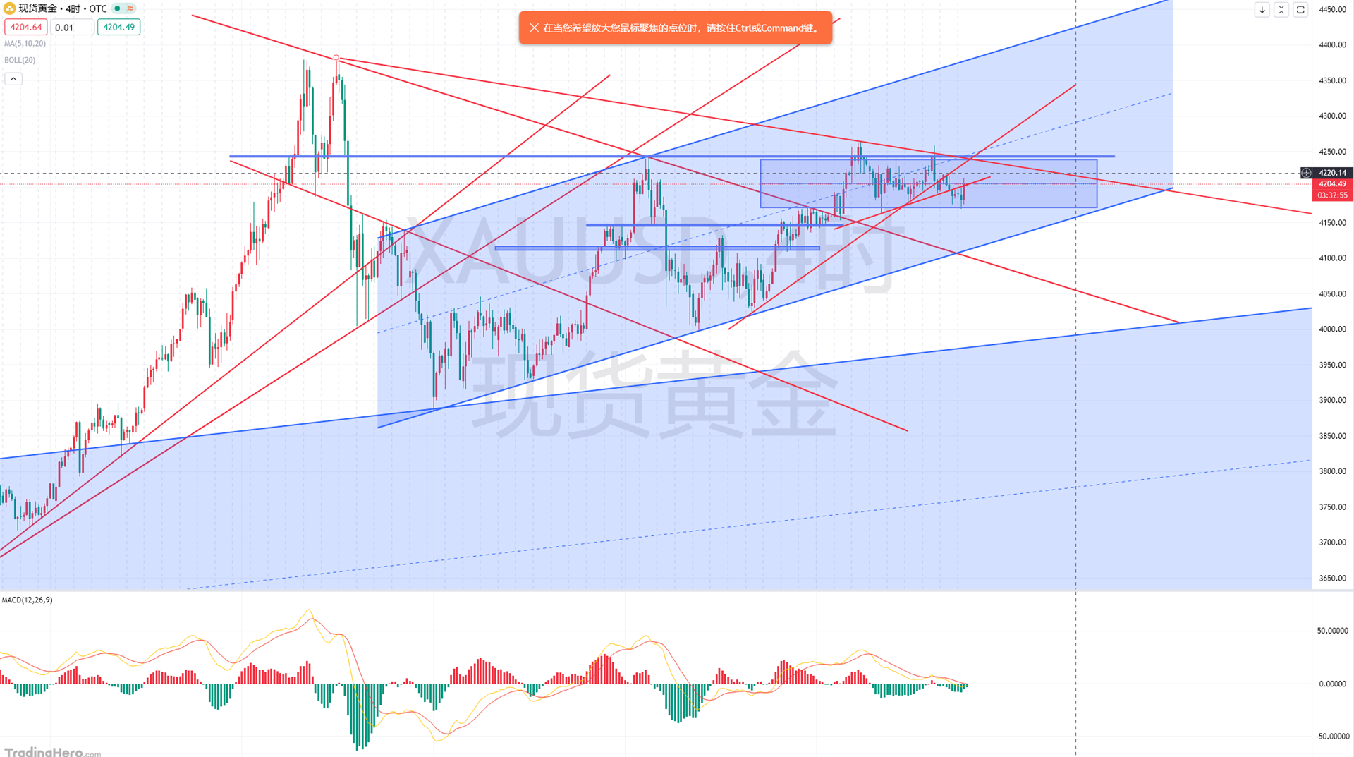 昨天现货黄金先跌后涨到再跌,整体还是一个震荡,从现货黄金运行轨迹来看与分析的一样,价格早盘5-15破位走了一波下行,欧盘拉升到4212.6这与我们提到的08-11空也符合,这一波跌到了90这里,晚间在四小时弱多后,价格形成震荡宽幅洗盘上扬,尾盘给出了以60.3白银对应黄金做空,价格对应在18这里,也回落了4201这里,从昨天的现货黄金运行我们也可以看出趋势性不延续,震荡力度较大,这也就是说机会很大,明天凌晨又是美联储决议,预期日内还是一个宽幅的洗盘,昨天价格下跌是刺破下线反弹到反转,走出了四小时级别的上涨,但是在小时图上轨附近*,目前运行于四小时中轴附近,可上可下的走势,有一点可以确认就是四小时的反弹并没有结束,价格又全部运行于短期均线上方,所以现在定论就是下跌到震荡的转变再到正式拉升的转变,基本就是这一逻辑,支撑上亚盘两处,30分和小时图的下线,97-87这里,上方压力仍然是20附近,突破以后看高到36-50一线,下边底线还是72-68这里,因此综上所述,现货黄金亚盘先回落先多。