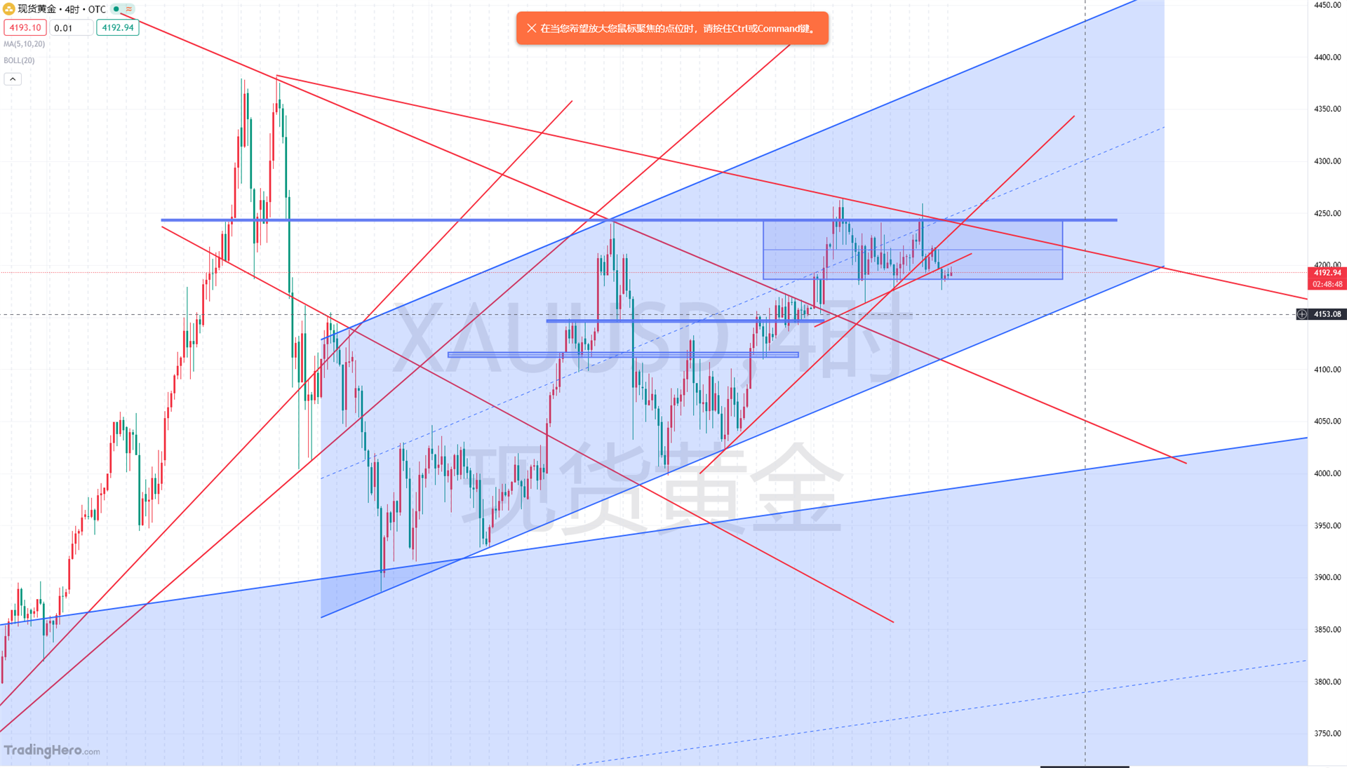 【3】多单等待现价提示。目前待定三个点4142-4132-4122附近