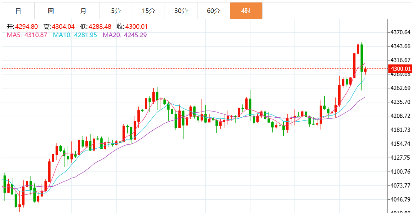 日线级别呈现三连阳走势,虽均为小阳线,未展现极致强势格局,但多头趋势连贯且稳固,上行结构完整。布林带呈开口向上形态,上轨*大概率位于4285附近,随着多头动能逐步积累,日线级别的放量上行空间仍较为充裕,需警惕多头延续下的突破行情。指标层面,MACD红柱持续拉长,金叉形态维持良好,趋势性支撑强劲;RSI运行于强势区间,未出现顶背离信号,整体趋势具备延续性,操作上需依托日线多头结构顺势布局,不轻易逆势看空。