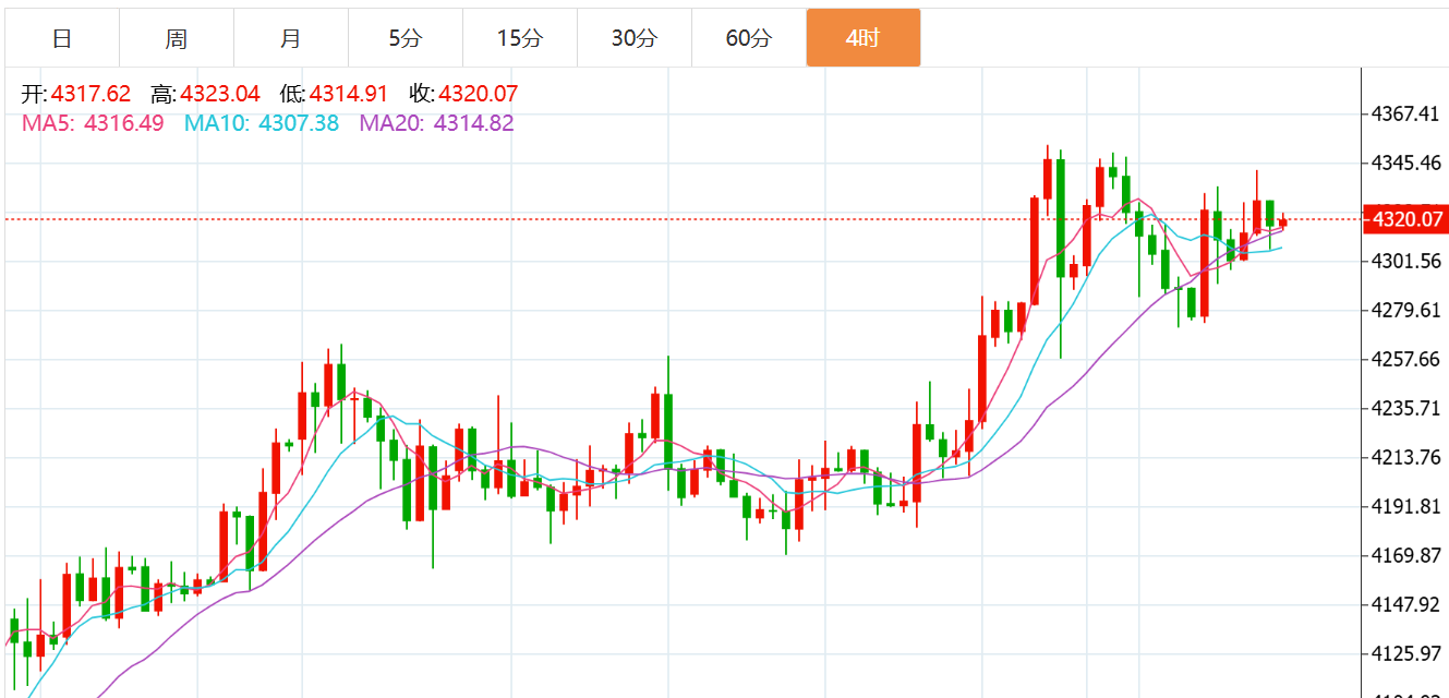 小时图上来看,日内黄金上方关注三角区间上沿4330附近压力争夺,如果能站上,则再去关注前高4350-53附近压力,日内下方则关注小时图三角区间下沿4285-80附近争夺,而4300作为三角区间中间区域也值得去关注。操作上,而日内激进则可先围绕4330—4280区间进行短线低多高空,扩大区间则放宽至4350—4250。看今日最终是继续处于4300上方,还是回到4300下方,据此再做短线方向选择。综合来看,今日黄金短线操作思路上贺博生建议回调做多为主,反弹做空为辅,上方短期重点关注4350-4370一线阻力,下方短期重点关注4300-4280一线支撑。