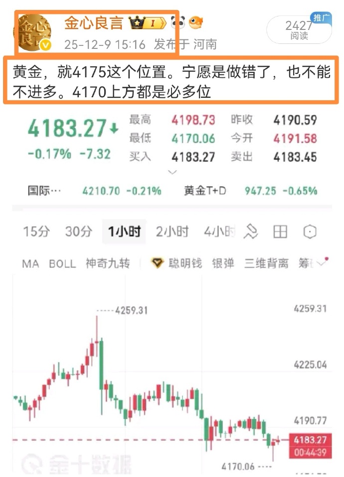 金心良言:上周4170抄底多,现在4300附近抄底多