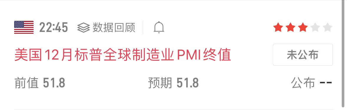 重点关注22:00美国12月ISM非制造业PMI数据,预期52.3,前值53.1,数据低于预期将助推金价突破4410关口。
