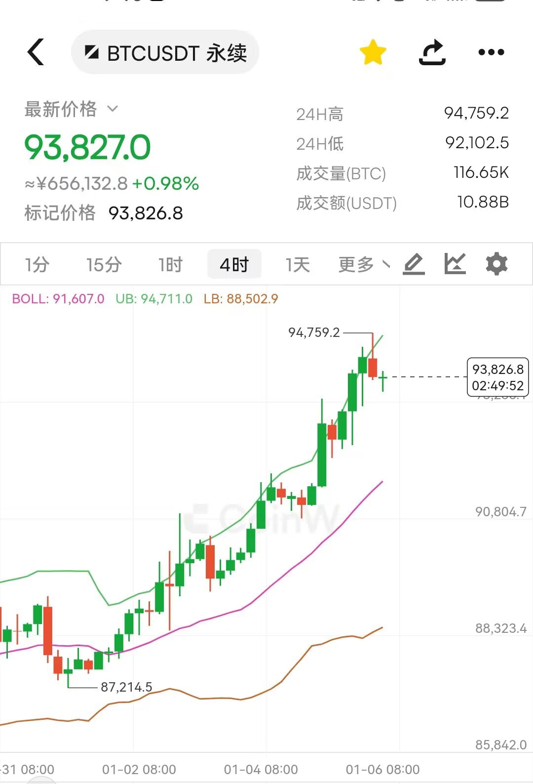 比特币隔夜冲高来到94700一带,整体而言仍旧是震荡上行的节奏,慢涨是趋势,急涨是拉盘,然后小碎步式的上扬具有一定的延续性,今天亚盘来看有回撤的迹象,所以早上不追高,激进者可直接94000附近直接放空,稳健派选手等待回撤92000上方再卡点多。