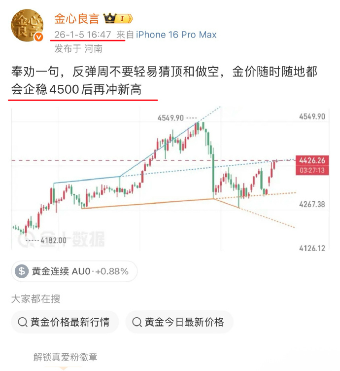 截止到今天周三,金价总共波动170点,波动幅度全部都看到了。(图一、图二)布局到4400目标,后面三张图布局到4500,今天也都到位了