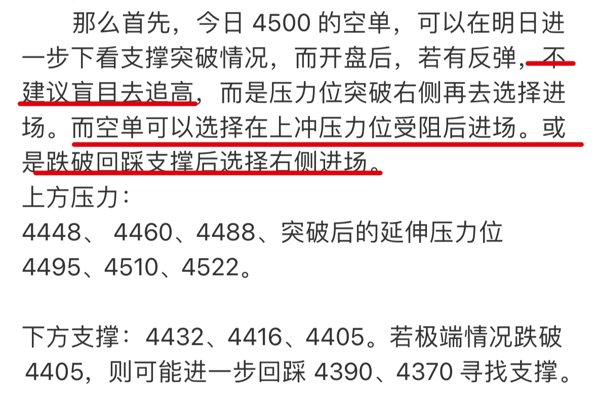 4432、4416、4405依旧是日内的三大支撑。低位支撑不破仍然还是一个震荡蓄力上冲的趋势。