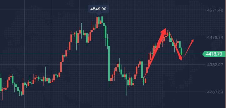 隔夜美国ADP数据表现不及预期,给到原本强势的美元一定压力,只是因为非农在即,市场表现谨慎,美元指数整体也还是迎来了超跌反弹走势,而黄金在高位是走出了获利了解利润回吐的回落调整,基本也是符合我们的预期,看黄金在高位走反复,上个交易日黄金早盘冲高4500关口承压受阻回踩4459附近反抽到4480一线,我们跟大家分享的早盘思路回踩接多兑现到了目标位,