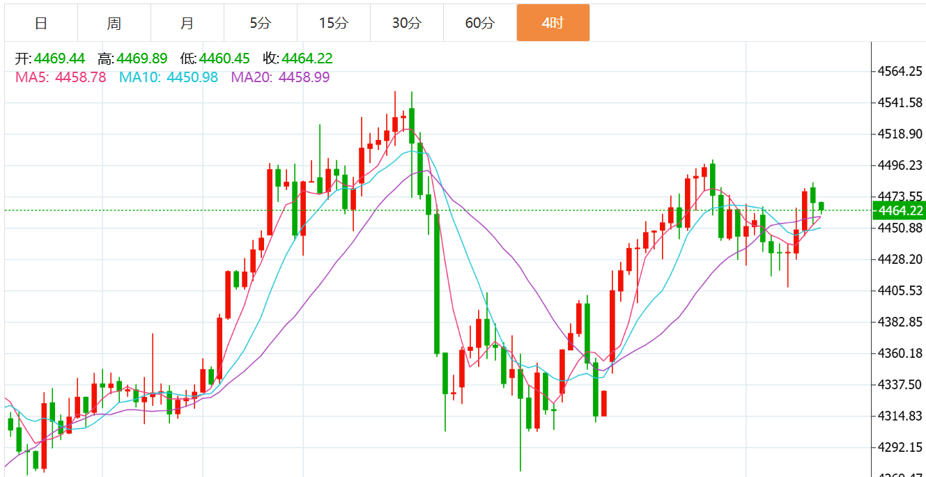 黄金技术面分析:当前盘面来看,本周经过了四个交易日,前两个交易日是技术面走势,贺博生强调过,有头肩底的反弹,有双底的上涨,所以,黄金从4300上涨到4400,再上涨到4500,后面两个交易日有小非农ADP数据,有失业金数据,虽然数据对暂时市场的影响力表现不加,但基本没有改变黄金的大趋势看涨的思路,因此,黄金还是走出了趋势的上涨空间,周四一度上涨至4485高点,也就是说,暂时黄金是一个多头趋势下的高位震荡。接下来就重点关注周五的非农数据影响,本次非农数据前值是6.4w,市场预测值是6w,如果实际值高于市场预测值,说明美市场向好,利空黄金,如果实际值低于市场预期值,说明美市场低迷,利多黄金,按照ADP的实际公布来看,数据是偏向于利多黄金,那么,今天的非农数据大概率也会偏向利多黄金,具体能不能走高,或者走高到多少,还是看数据的实际影响。