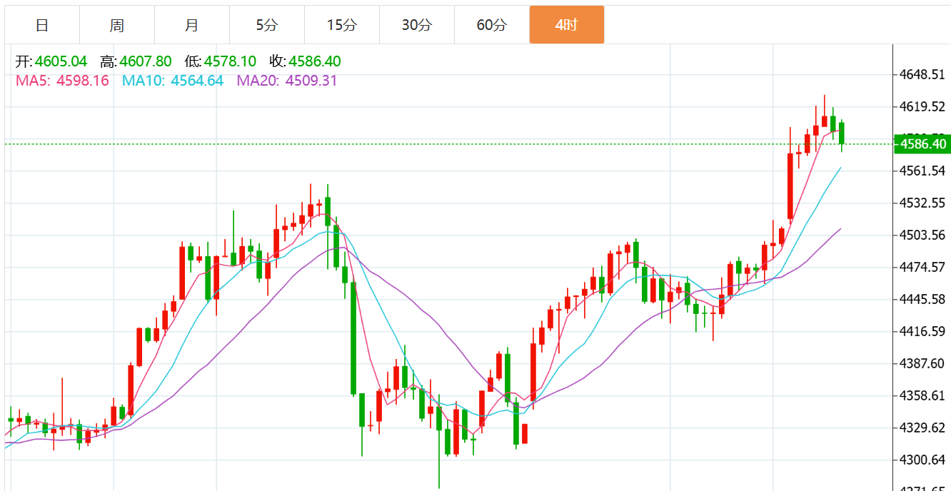 黄金技术面分析:黄金周一高开高走,早盘最高触及到4600附近,晚间再次刷新高点最高触及到4620位置,完全没有回踩的迹象,黄金整体趋势依旧强势看多,近期鹰酱司法部向美联储发出传票,引发市场对央行独立性的广泛讨论,一旦美联储的决策不再被视为中立,市场对政策可信度的信心就会动摇。另外美国经济步入“温和增长但结构失衡”的新阶段,全球机构普遍预判经济衰退概率较低,就业市场结构性疲软、使得经济复苏之路充满不确定性,多重因素的影响下为黄金上涨提过了支撑,结合当前盘面来看:黄金价格已经突破前期4550高点,截止当前最高刷新到4620位置,黄金二次上涨的结构已经形成,日线连续收大阳线,价格有望突破布林带上轨的迹象,若继续走高,突破上轨黄金价格即测试4690位置,目前来说上方暂不猜顶,下方有效支撑在4560位置,只要不跌破该位置黄金依旧可以看涨,操作上建议回踩就是做多的机会。综合来看,黄金今日短线操作思路上贺博生建议以回调做多为主,反弹高空为辅,上方短期重点关注4630-4650一线阻力,下方短期重点关注4550-4520一线支撑。