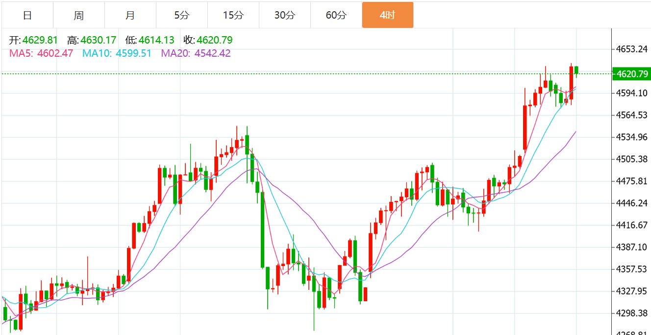 黄金技术面分析:技术面从黄金日线结构图来看,上周黄金持续居高震荡后,短线方向已经很纠结,而周末地缘局势紧张再度引爆市场避险情绪,这也导致行情再度情绪化,甚至冲破日线级别趋势线4580-4600附近压力,技术上此位的突破可以暂看作为“假突破”,因为此突破毕竟是在基本面消息影响下的,后续行情如果想要维持强势,就必须要基本面的持续利多助力,所以一旦基本面没有再出利多刺激,甚至于出现反向利空,那么黄金随时可能回归技术上的承压回修需要,后半夜黄金出现回撤修整即是技术上回修需求的体现。