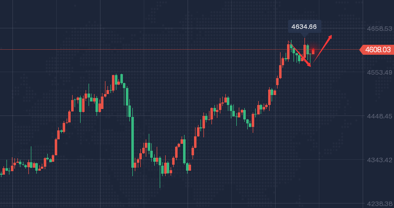 单看收线,今天应该回落,但是由于各方面的消息并不支持大跌,所以我们暂时按照高位震荡思路操作。目前上方阻力4610附近,也是这波回调618的位置,不破小止损空。如果站稳4610,上方还会去4620甚至30附近,今天也要防止行情继续冲高回落。早盘4586开盘就涨,接近日内低点可以继续多。有效下破4586,看昨天低点4570甚至50附近,触及可以再多。