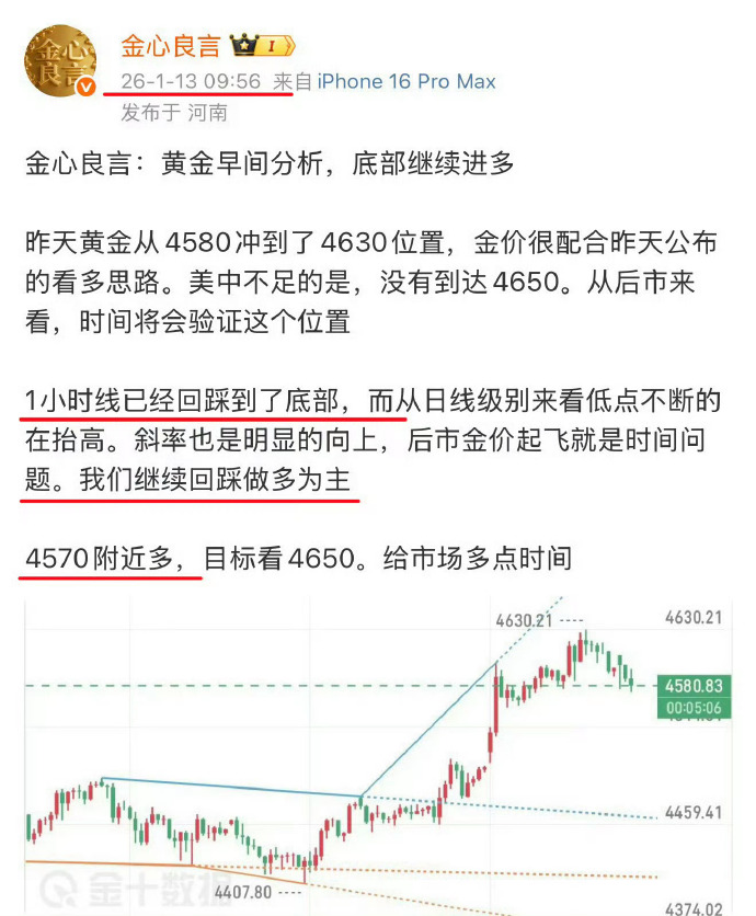 金价午夜上涨至4635,没有到4650就开始下跌了下跌最低到4570,就是昨天提示的进多位。你如果在这个位置二次进多,又是50点美刀翻仓不难,执行很难。但你找到我,只需按指令操作即可