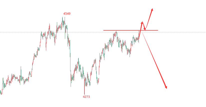 黄金小时线级别,隔夜成功试探4573支撑后,今日开盘直接一路北上拉升,一路冲到最高4639一线,也是图中箱体通道上轨,4640下已多次承压,今晚关注它的得失情况;若冲破可能还会延续空间,但容易冲高回落;理想走势是倾向于向下打压一波,维持高位整理,再触及通道下轨4580-4570支撑稳定再进行明日的拉升;高位反复区间整理之后,再继续日线进一步的上破发展,然后周五尾盘要小心会不会出现获利盘;因此,今晚先留意4640阻力,若上破则留意日线4675下阻力,支撑4580-4570,中间尽量多看看,卡两边即可,总体上仍维持北上为主不变,跟随大趋势。