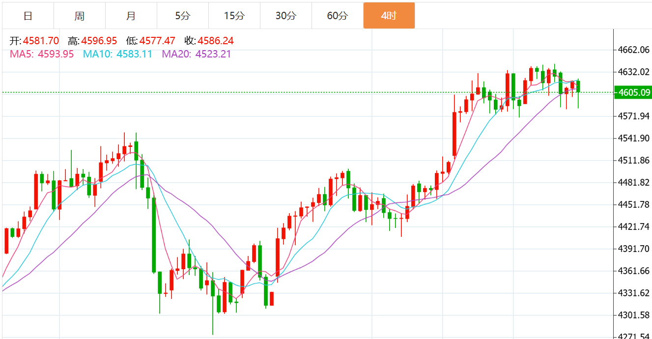 黄金技术面分析:当前盘面来看,经过三天的上涨,黄金目前最高在4643附近,现在上方的趋势线有一定的*,结合前期的上涨趋势线,有可能形成楔形上涨状态,这种状态虽然证明不了黄金未来要跌,但至少能说明黄金在上涨中有点泄力,越到上方,上涨的空间越小,而且随时都可以下跌空间。虽然暂时黄金没有下跌,但是周四黄金很有可能会出现这种走势,先下结论,今天出现有效调整,下方关注4570,4520两个支撑点。从技术面来看,今天有两点改变,第一周三k线收在布林上轨之下,已经没有周二,周三那么激进极强的表现,第二H4周期布林已经收口,5,10日均线形成了勾头表现,这波黄金下行明显,今天非常有必要调整一波,下方线看周三的关键支撑4570,再看本周目标4520/4500区间带。因此,今天继续提醒大家,在当前疯狂的多头表现下,谨慎对待这波上涨,不要追高,小心2米的大刀砍下来。当然,即使下跌下来,黄金也是多头趋势,这一点没有变。晚上关注美失业金数据影响。综合来看,黄金今日短线操作思路上贺博生建议以回调做多为主,反弹高空为辅,上方短期重点关注4620-4640一线阻力,下方短期重点关注4580-4560一线支撑。